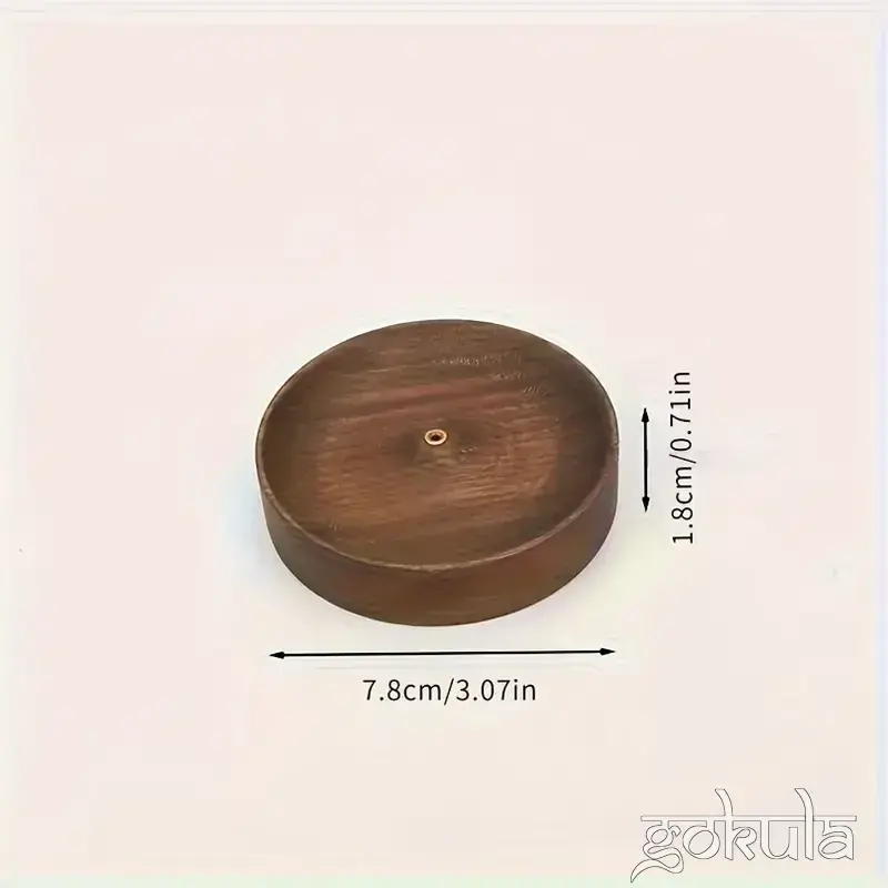 7.8cm Natural Wood Circular Incense Burner – Stick Holder for Home & Meditation