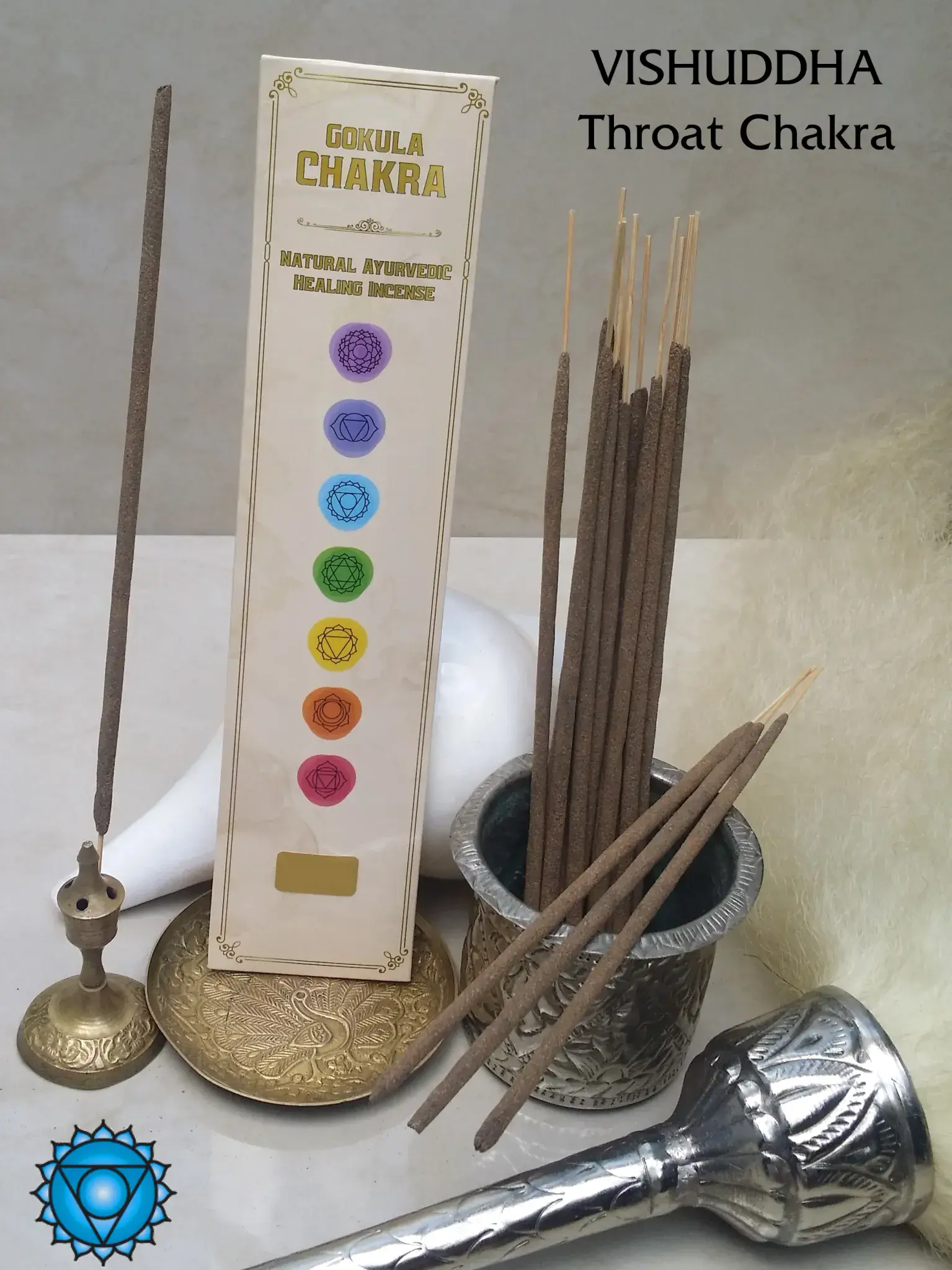 Rooted in the wisdom of Ayurveda and yogic tradition, this incense is designed to support practices associated with the Throat Chakra (Vishuddha)—linked with themes of communication, creativity, and self-expression. Its clear, uplifting scent helps create a space for verbal clarity and inner growth.
